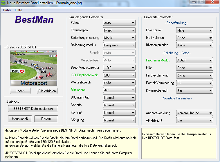 BestMan unterstützt zudem die Erstellung von Movie-BESTSHOT Dateien.